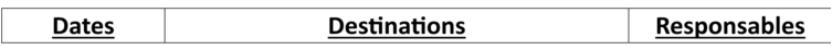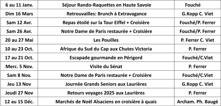 Prévisions de voyages et sorties 2025